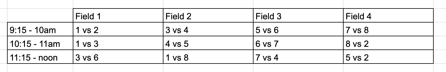 9:15 – Team 8 on Field 4
